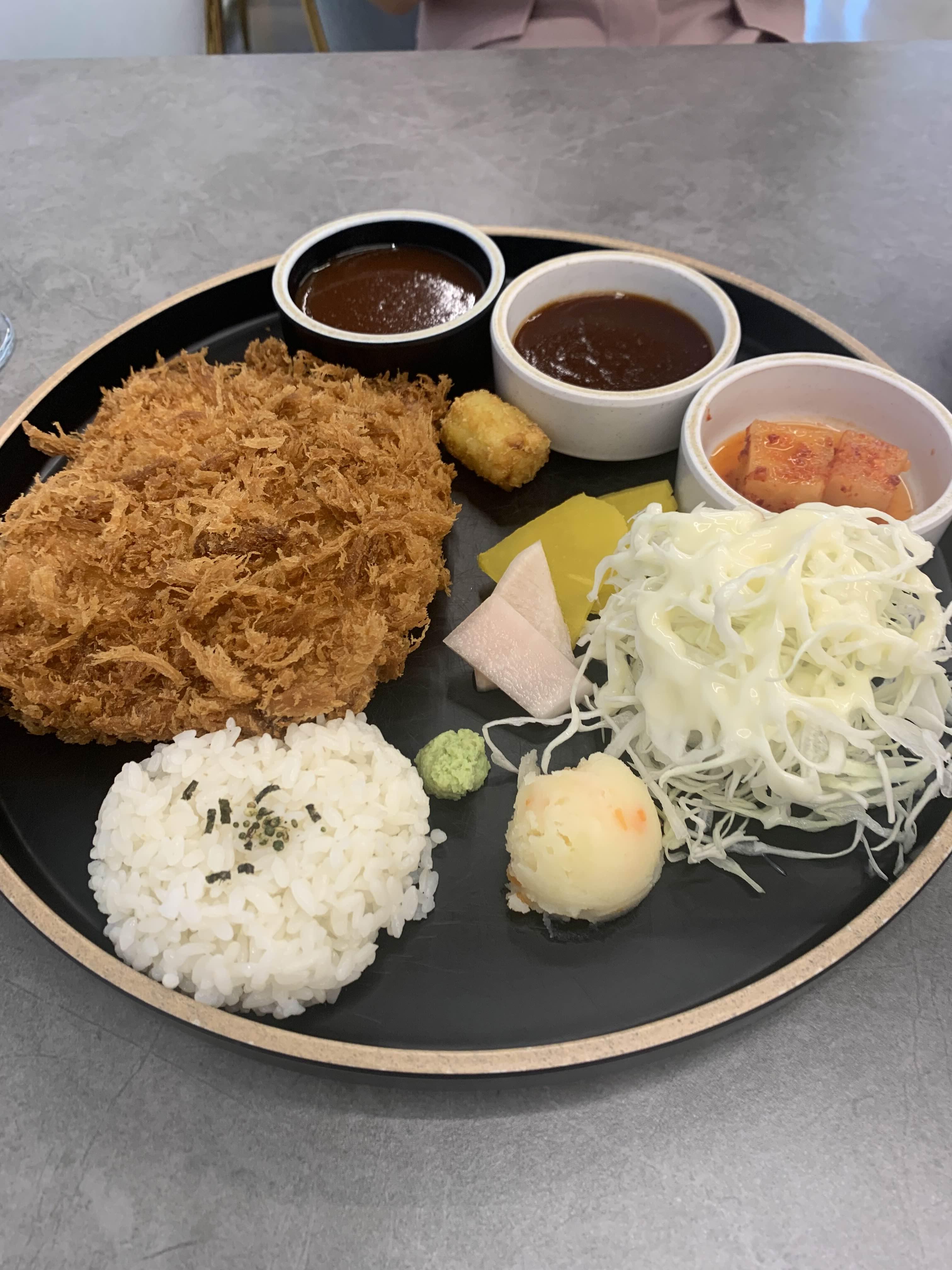 국내산 등심 수제돈까스+소스+스프+야채샐러드+깍뚜기+밥+감자샐러드 12,500원