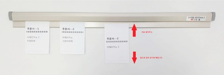 음식점배달 배달전문점 빌지꽂이 오더렉 400mm 업소용작업대 후드 부착 주문서꽂이