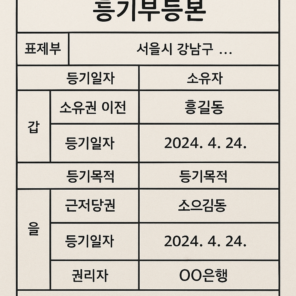 근데 막상 떼어보면… 네모칸에 한자로 막 적혀 있고, '갑구', '을구' 이러니까 헷갈리기 딱 좋습니다.