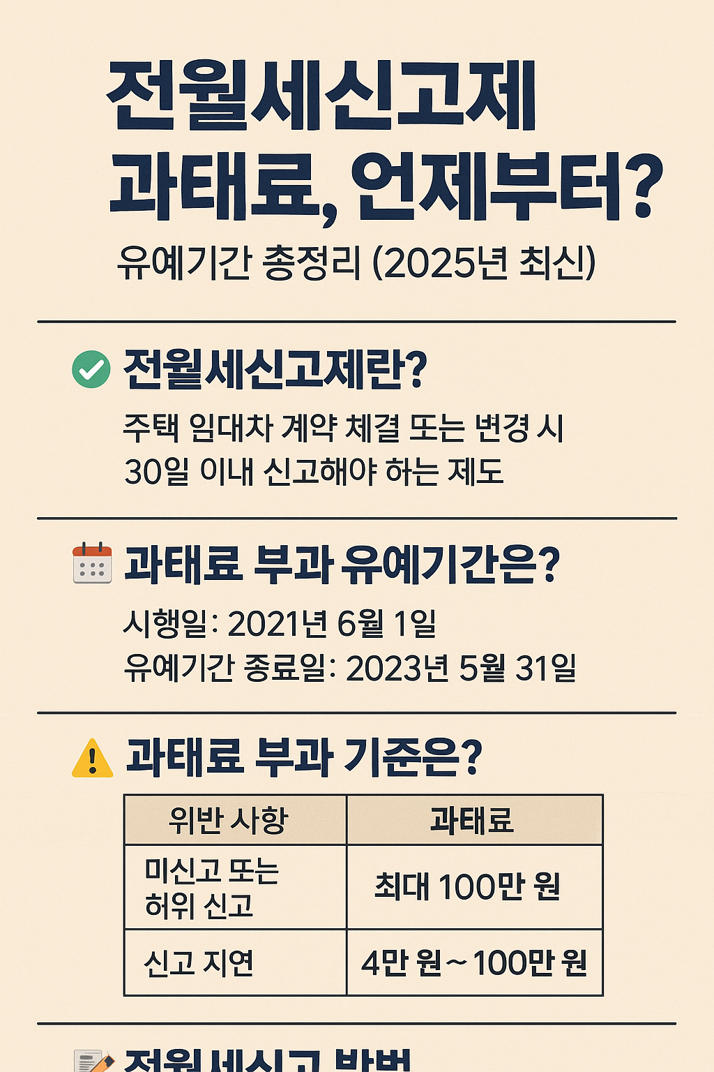 전월세 계약을 하신 분들이라면 꼭 알아야 할 제도가 바로 전월세신고제입니다. 특히 과태료 유예기간이 종료된 지금, 신고를 하지 않으면 불이익을 받을 수 있어 주의가 필요합니다.