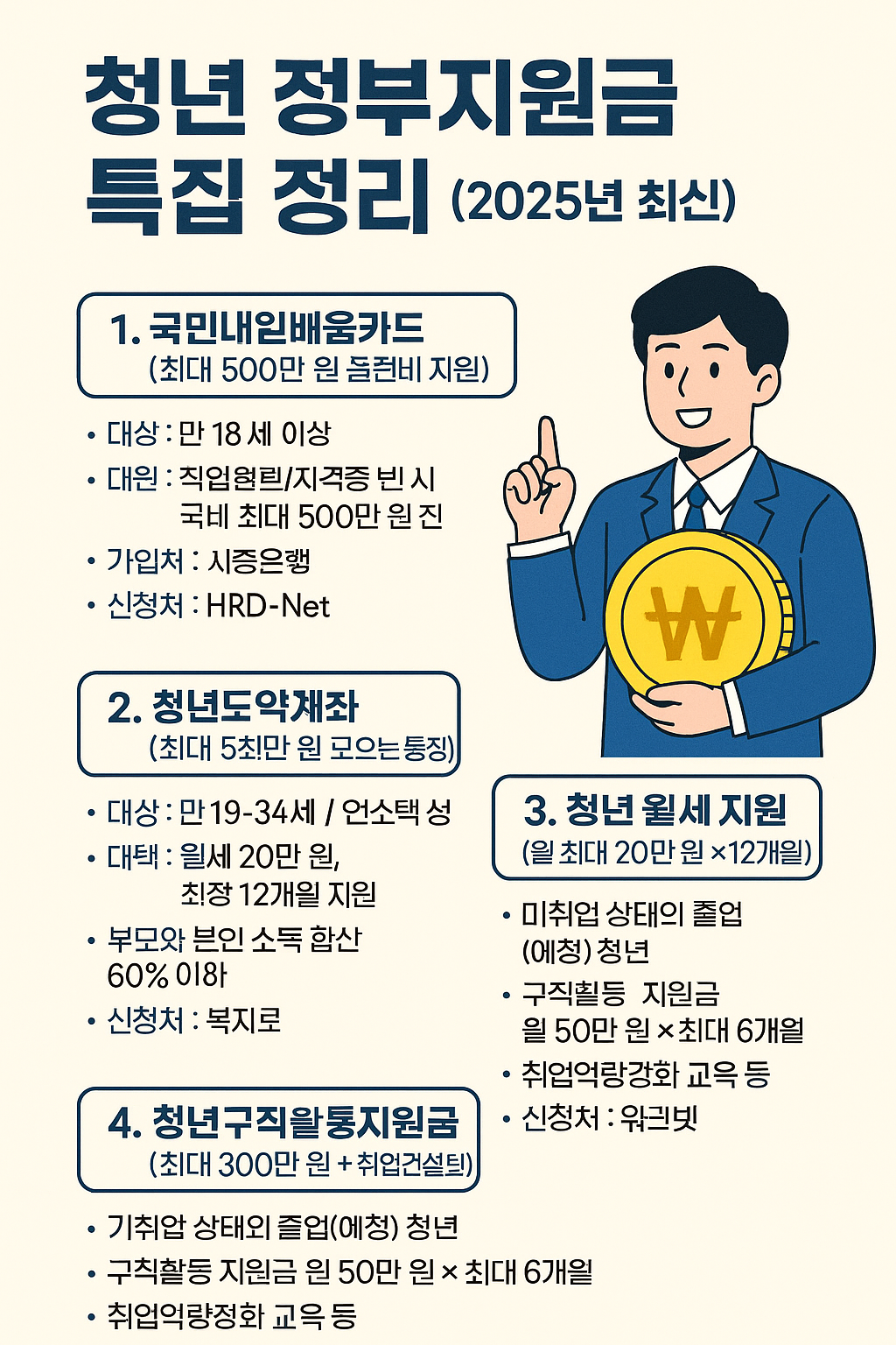 #청년정부지원금 #청년도약계좌 #국민내일배움카드 #청년월세지원 #청년구직활동지원금 #청년정책 #2025청년혜택 #정부지원금