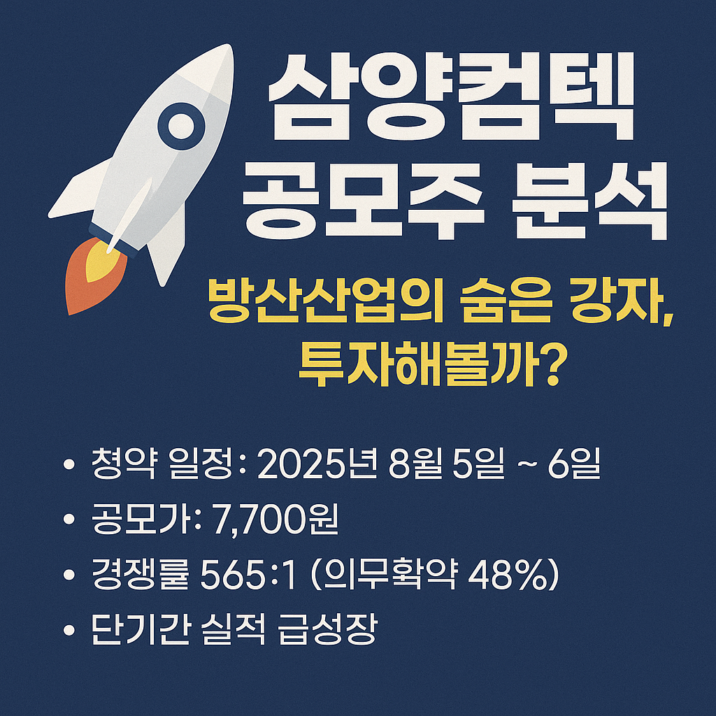 **삼양컴텍은 단기 수급과 방산 테마로 인한 시세차익 기대**가 가능한 종목입니다. 다만 **공모가가 고평가 논란이 있는 만큼 중장기 투자보다는 단기 접근이 유리**할 수 있습니다.