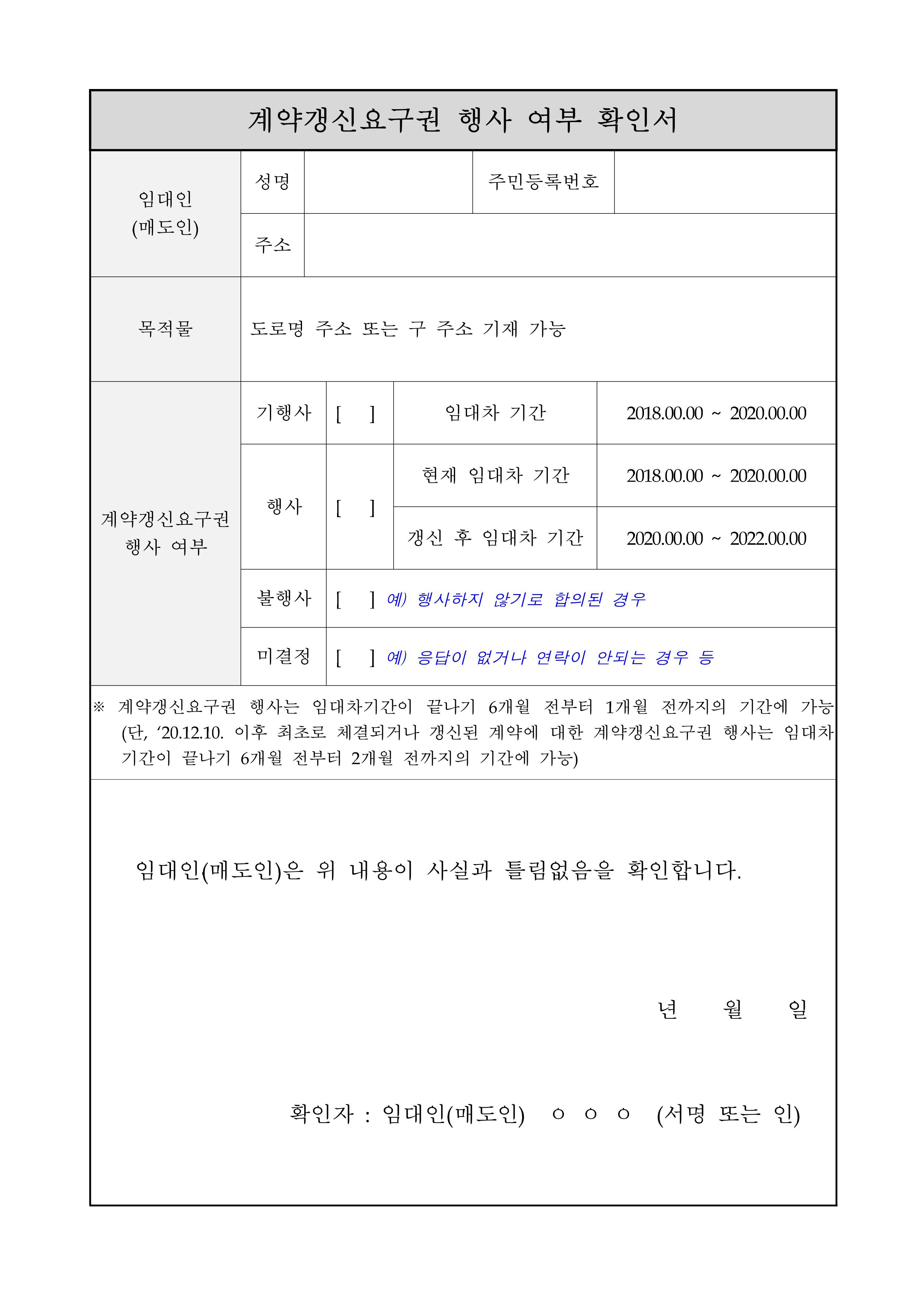부동산계약갱신요구권 양식, 계약갱신요구권, 전세계약갱신,