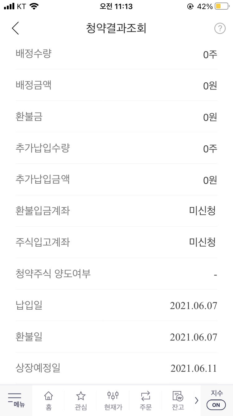 균등배정을 위해 엘비루셈 10주만 공모주 청약 신청함.