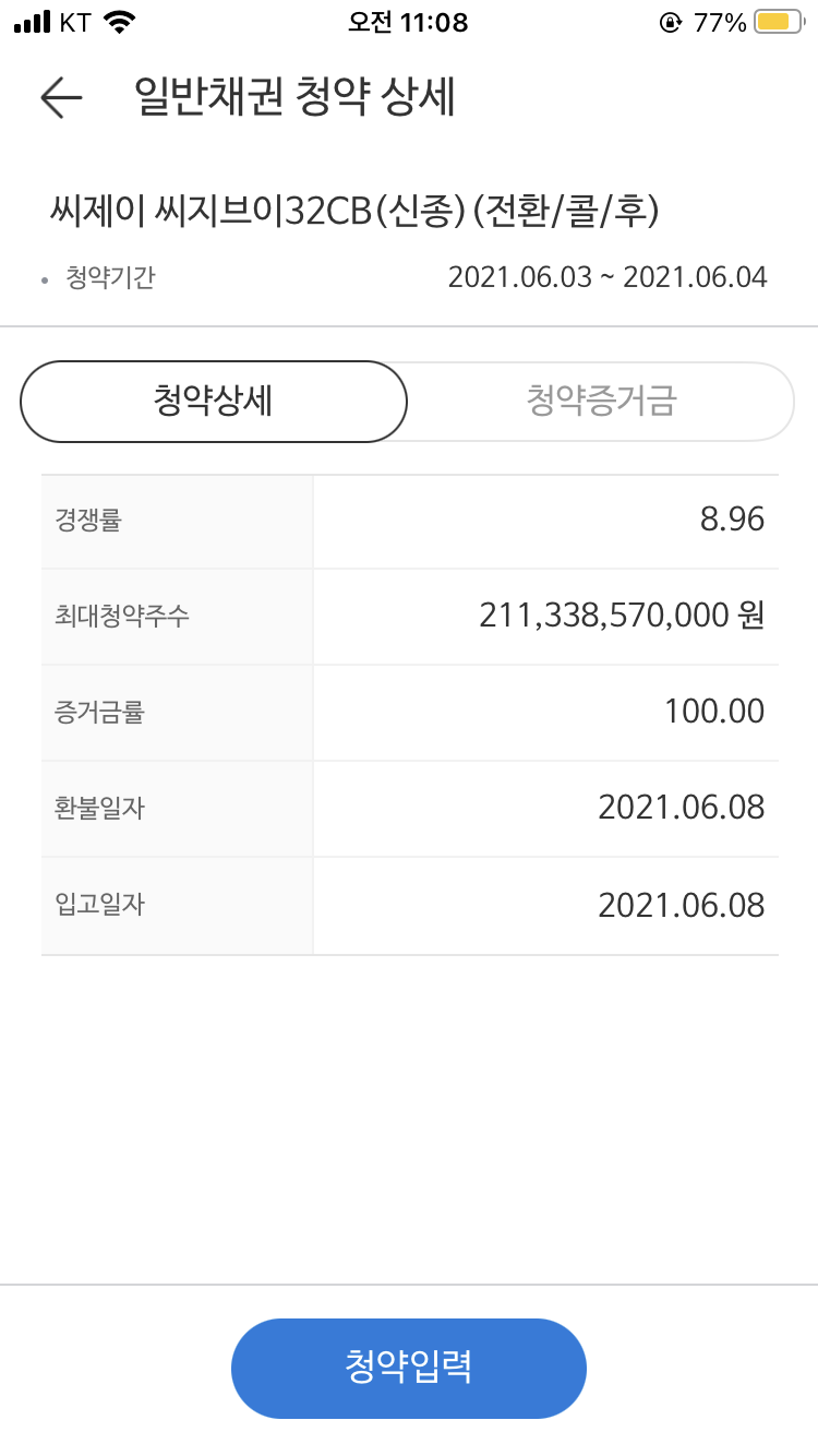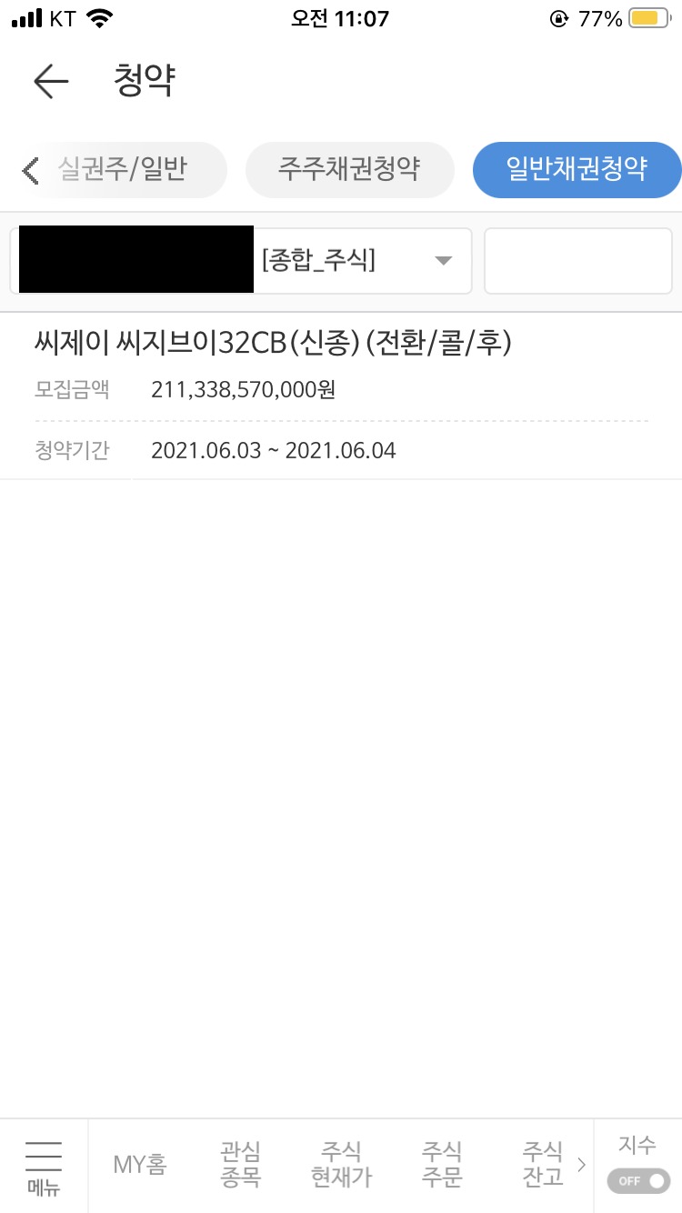 - 그냥 CJ CGV CB 일반 청약 접수한다.