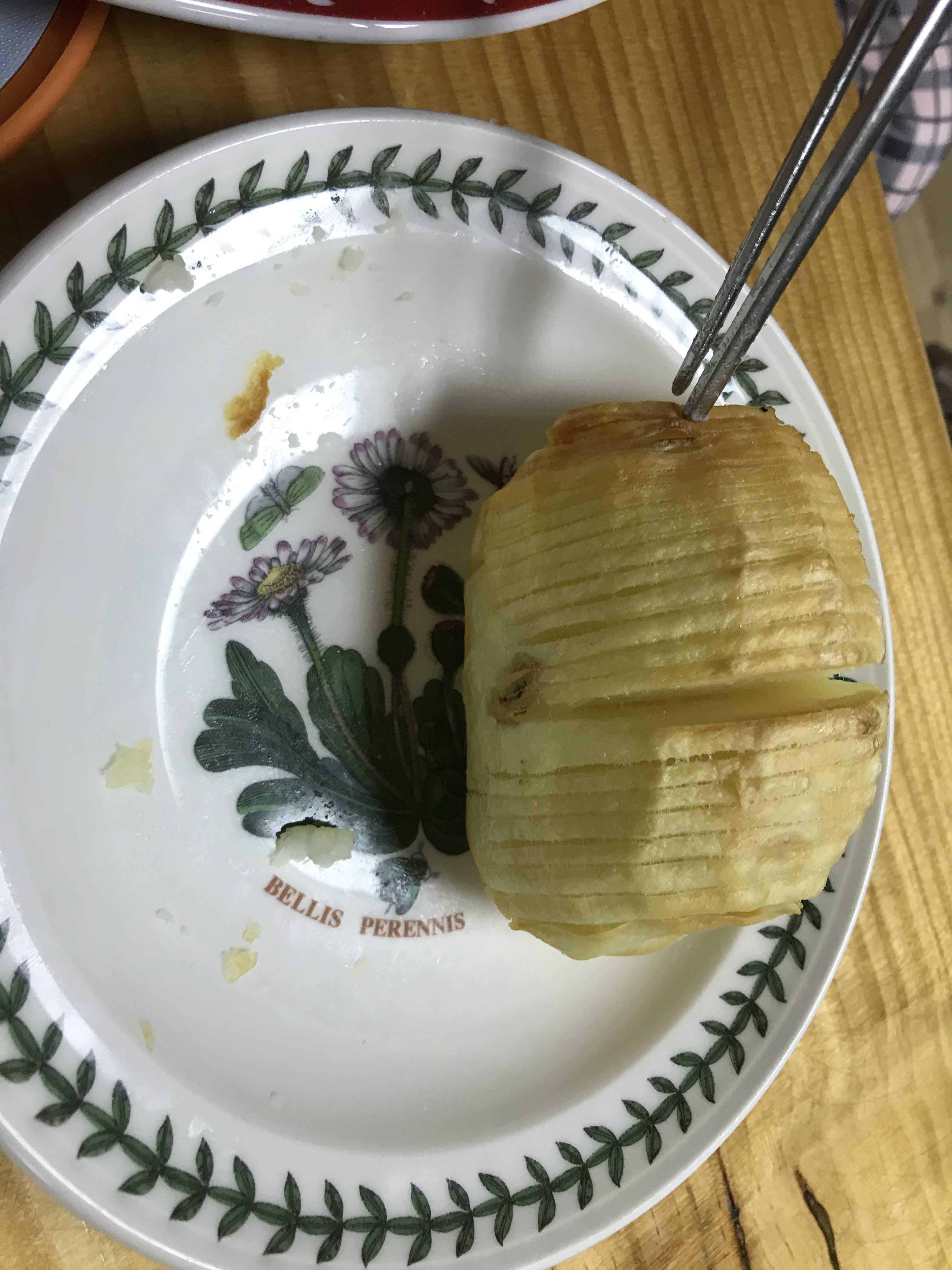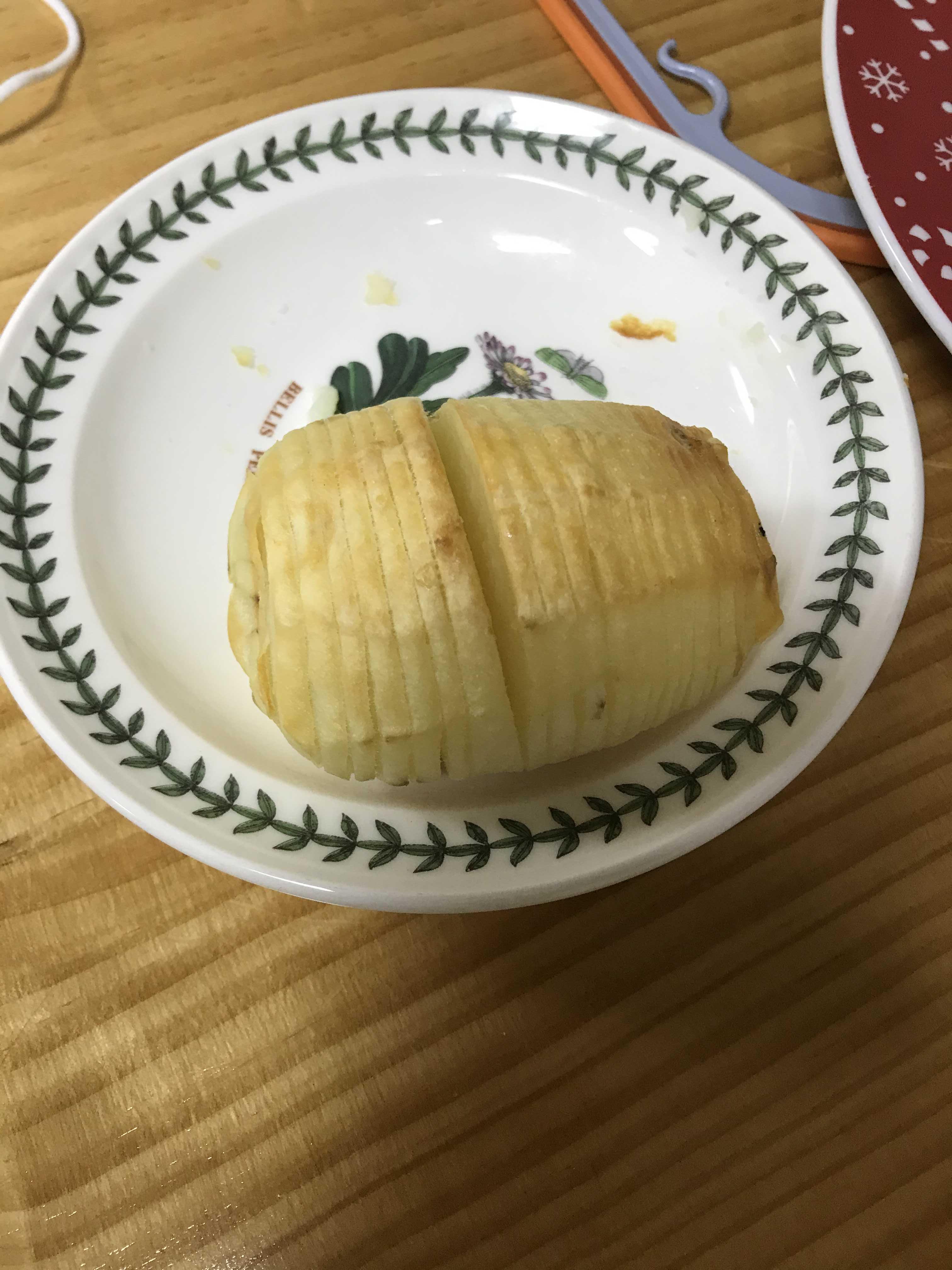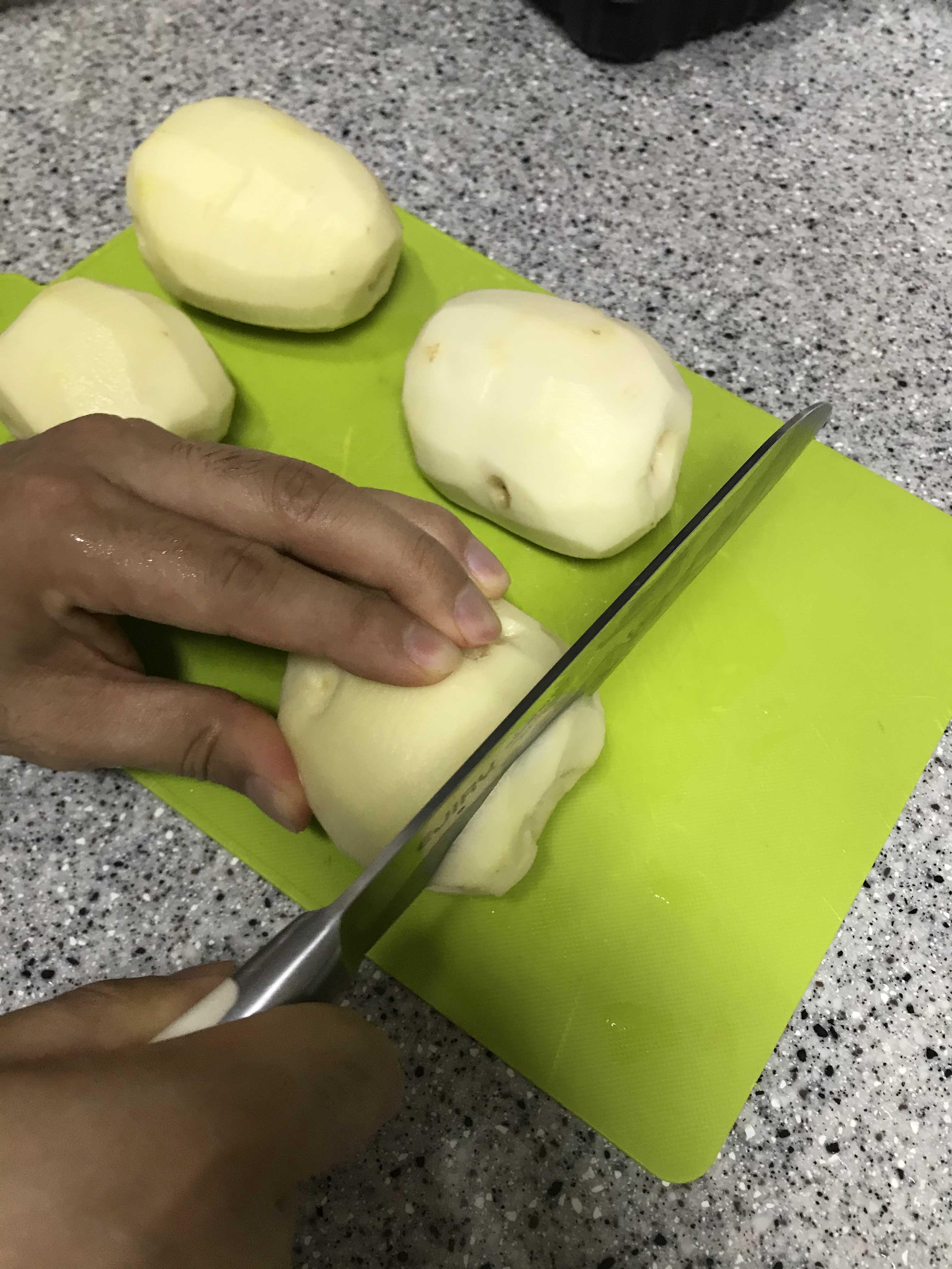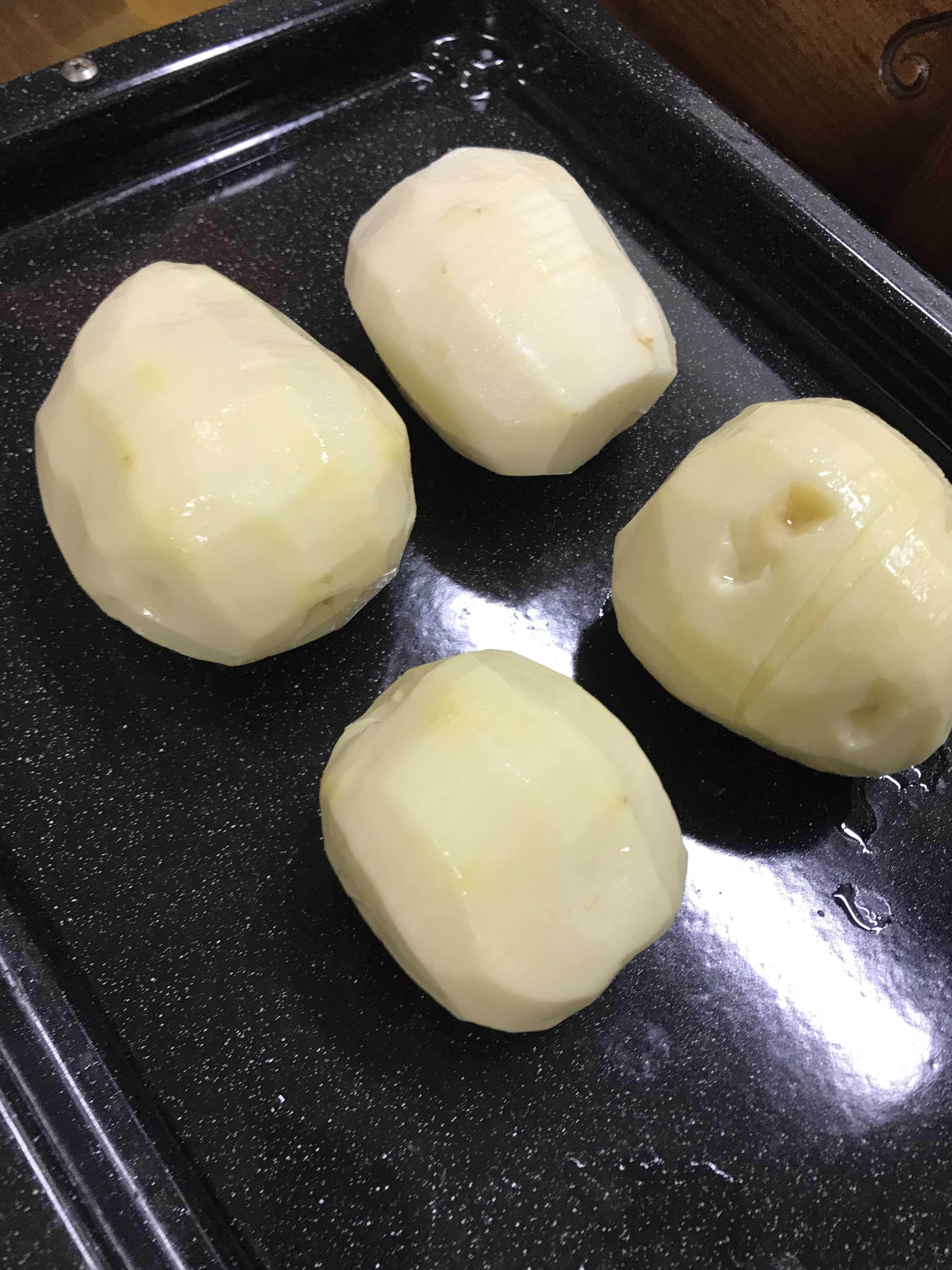 칼집 낼 때 다 짜르지 말고 감자의 3/4만 칼집 내야 합니다.