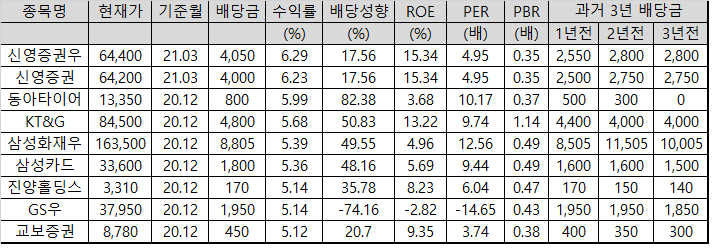 3년치 배당을 봐야 함.