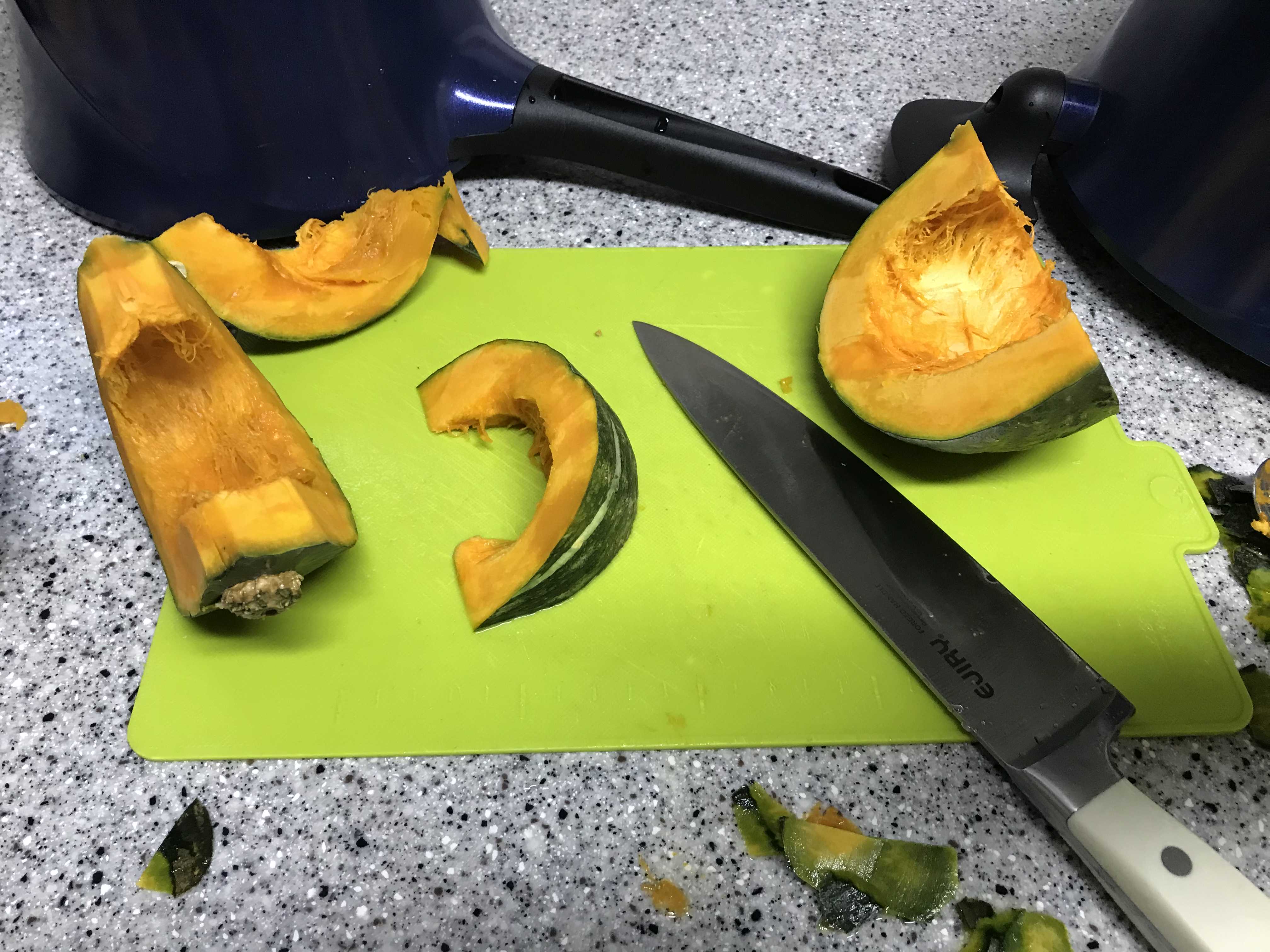 3. 단호박은 전자레인지로 익힌 후 껍질을 깐다.