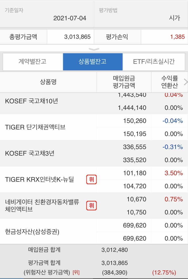 아래는 삼성증권 퇴직연금의 경우 일정비율로 투자 가능한 종목임.
