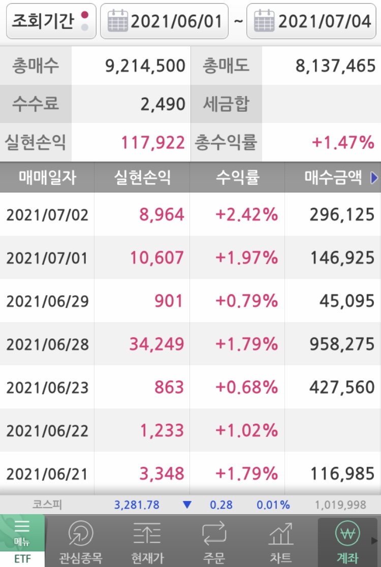 1. K증권. 117,922원 수익. 운이 좋았습니다.