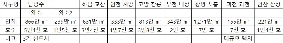 국토부와 LH는 연말까지 하남 교산, 남양주 대장, 부천 대장, 고양 창릉 등