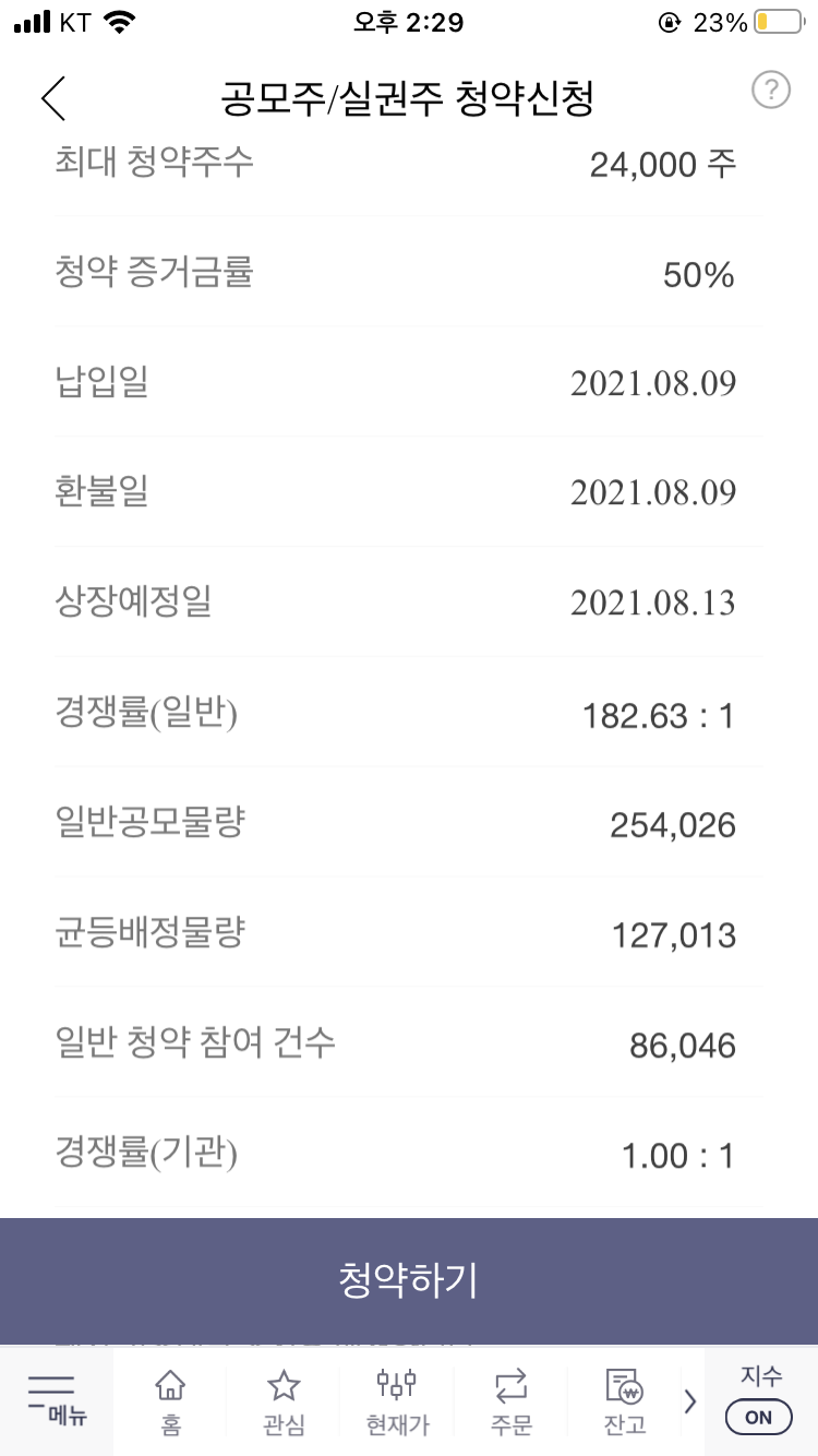 총 공모주식수 1,016,104주. 개인투자자물량 254,026주