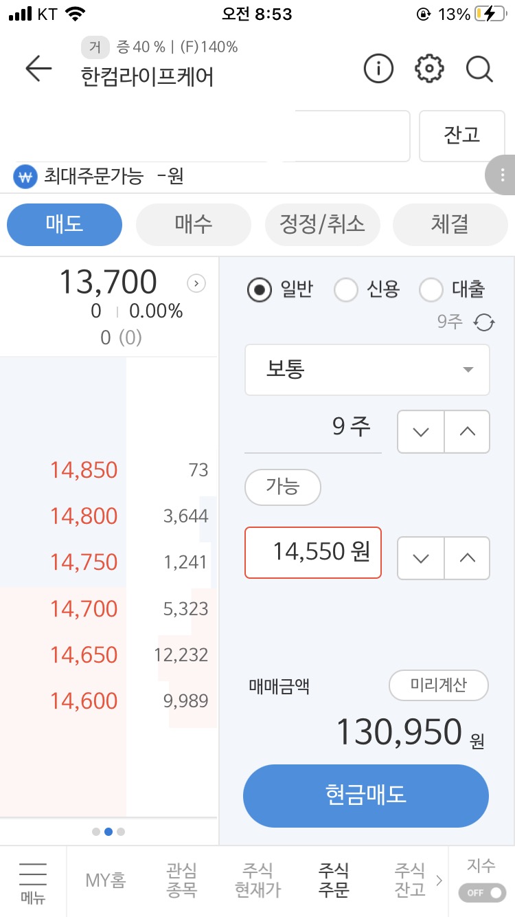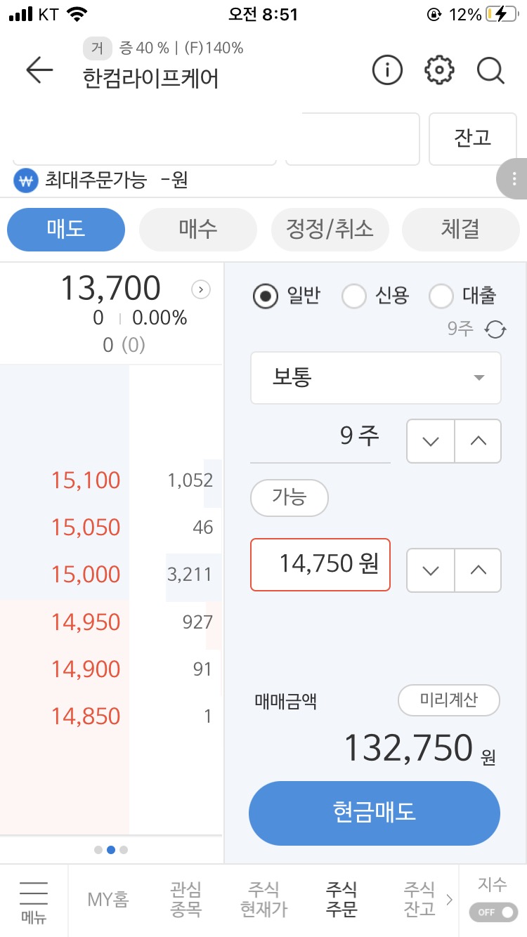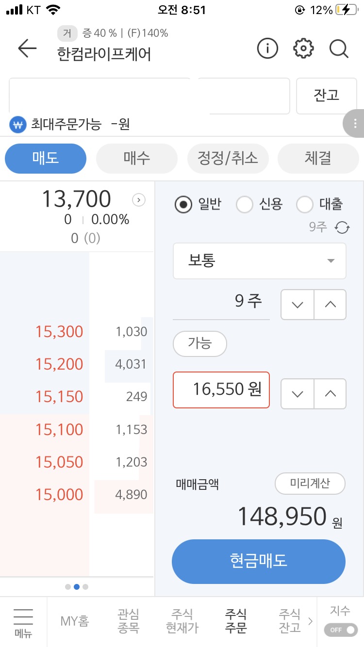 한컴라이프케어 매도가 16,050원