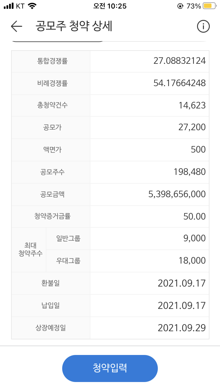 - 청약증거금율 개인 50% / 수요예측 참여기관 0%
