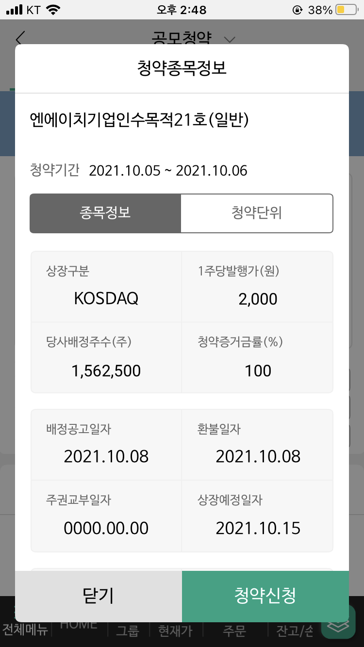 엔에이치기업인수목적21호 청약 엔에이치 기업인수 목적 청약
