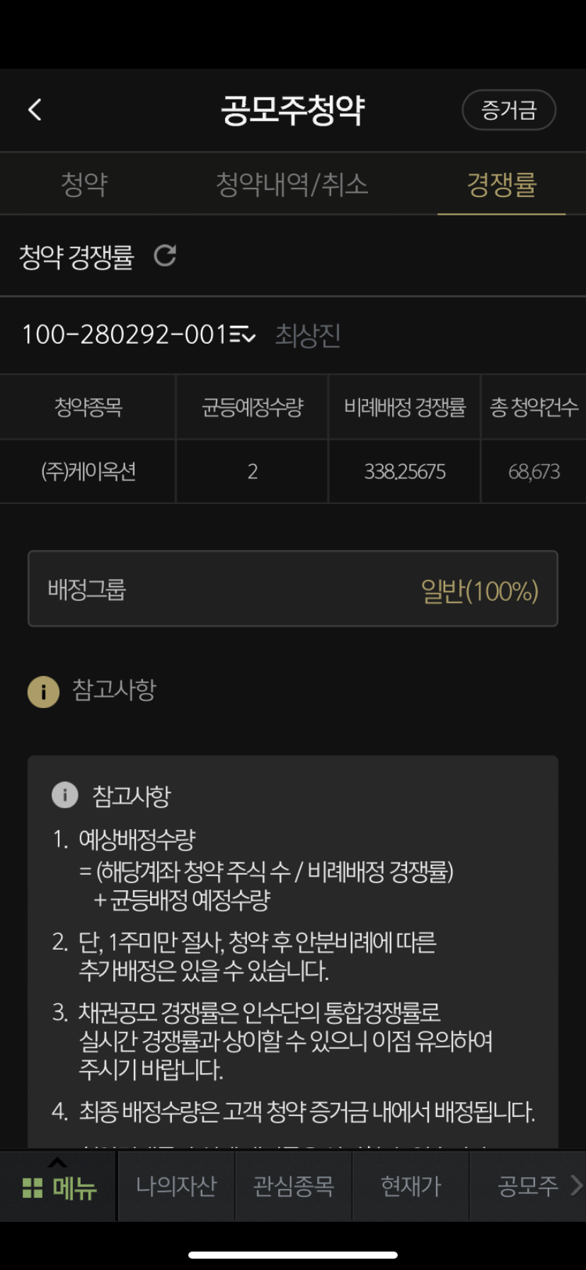 - 신영증권> 일반그룹:13,300주(100%), 일반그룹:26,600주(200%), 우대그룹:39,900주(300%)
