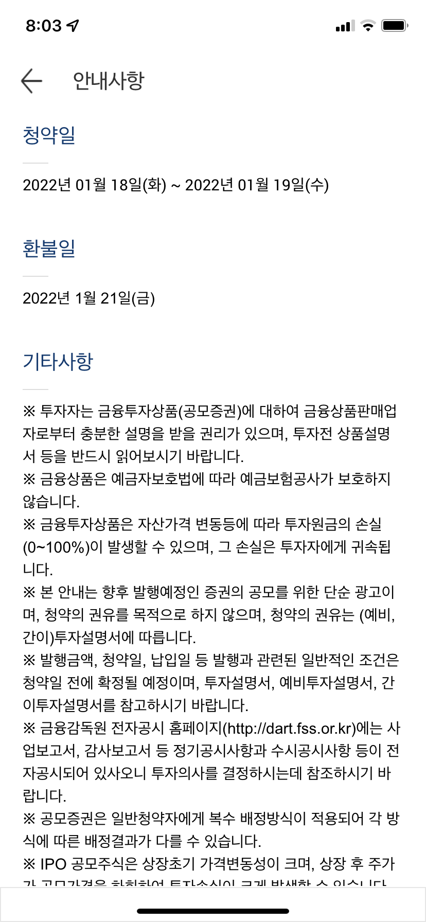 - 청약증거금율 개인 50% / 수요예측 참여기관 0%
