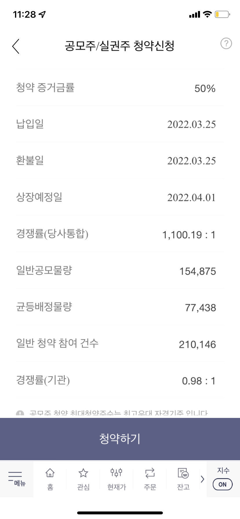 - 청약증거금율 개인 50% / 수요예측 참여기관 0%