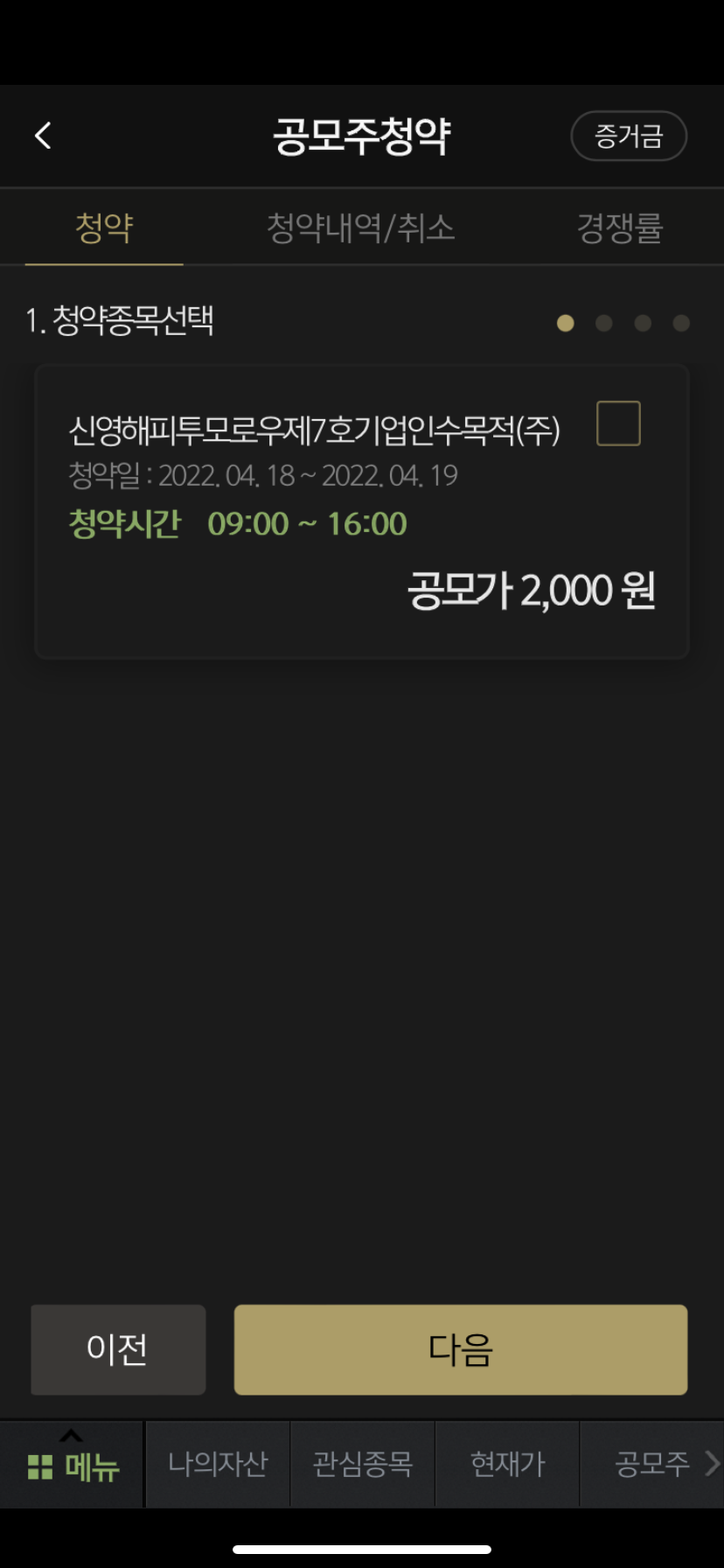 - 신영증권 : 일반고객:35,000주(100%), 일반고객:70,000주(200%), 우대고객:105,000주(300%)