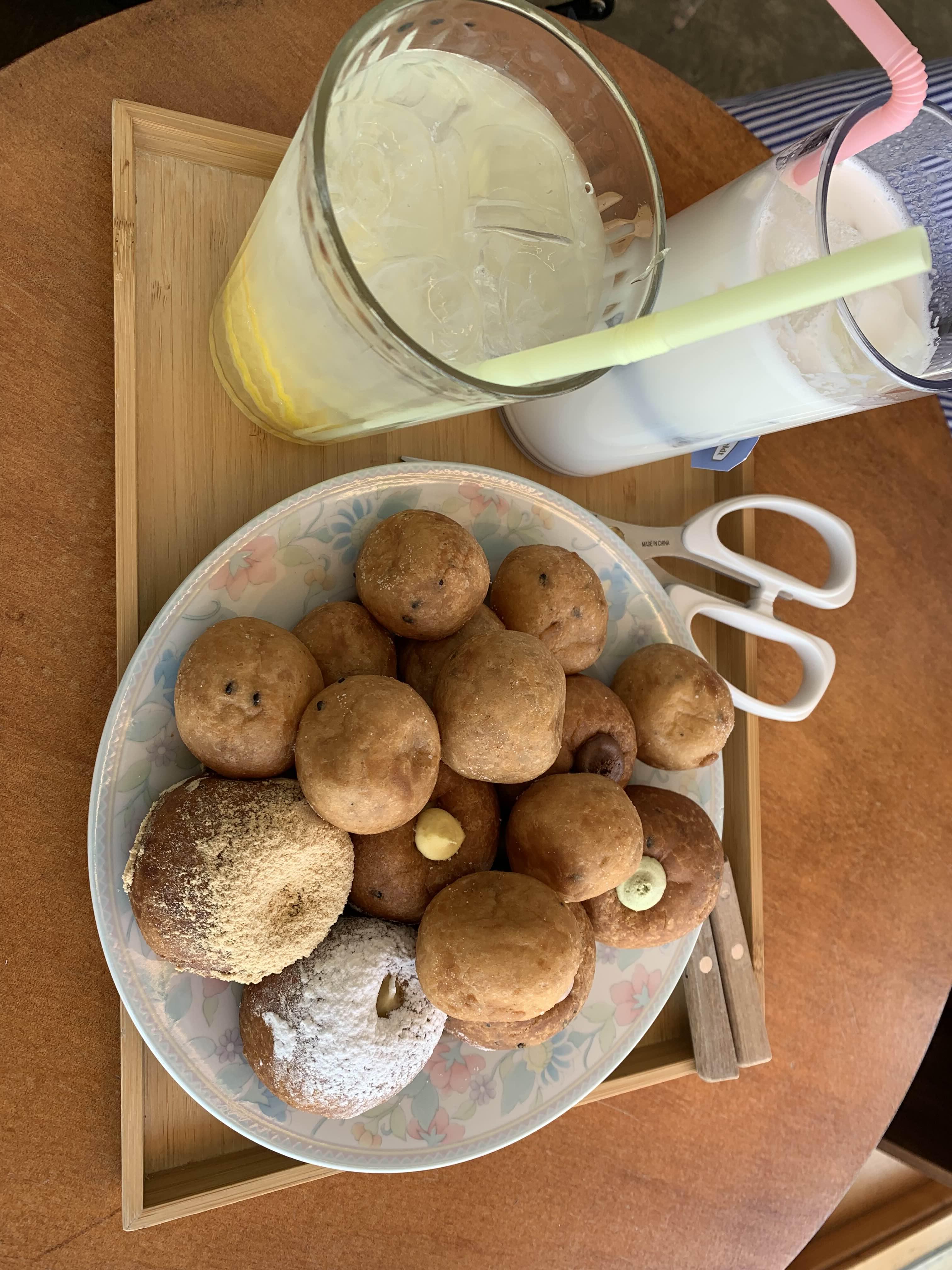 음. 찹쌀 도넛에 이것저것 넣음.
