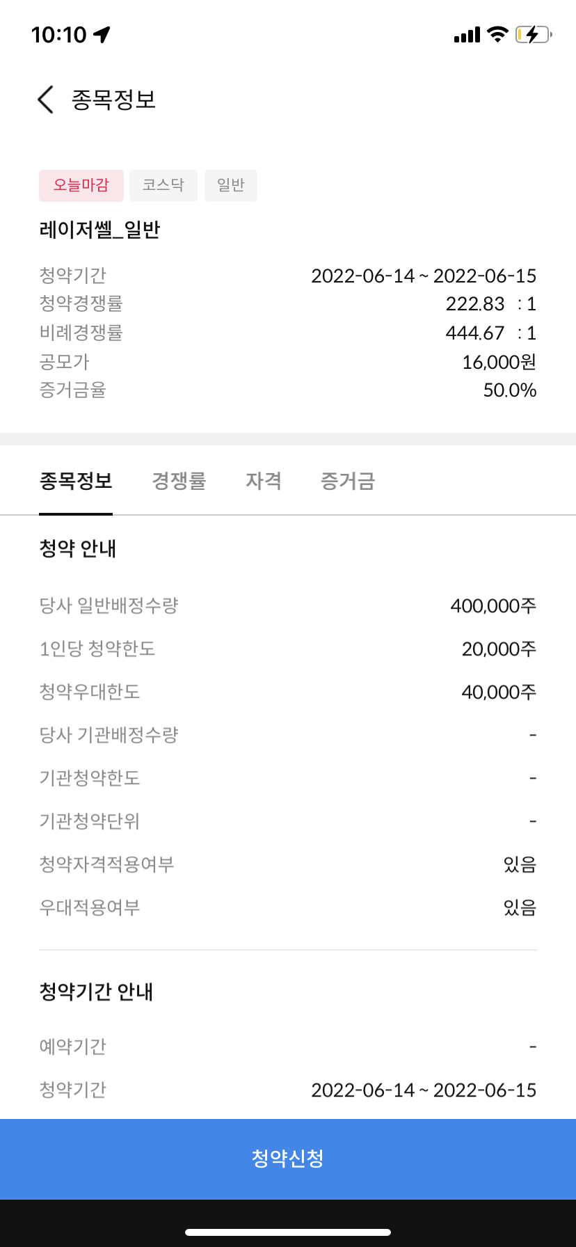 레이저쎌 증권회사 배정수량 청약한도 비고