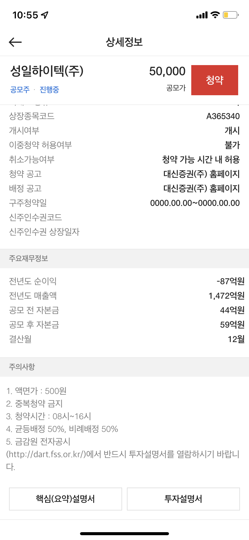 성일하이텍 증권회사 배정수량 청약한도 비고