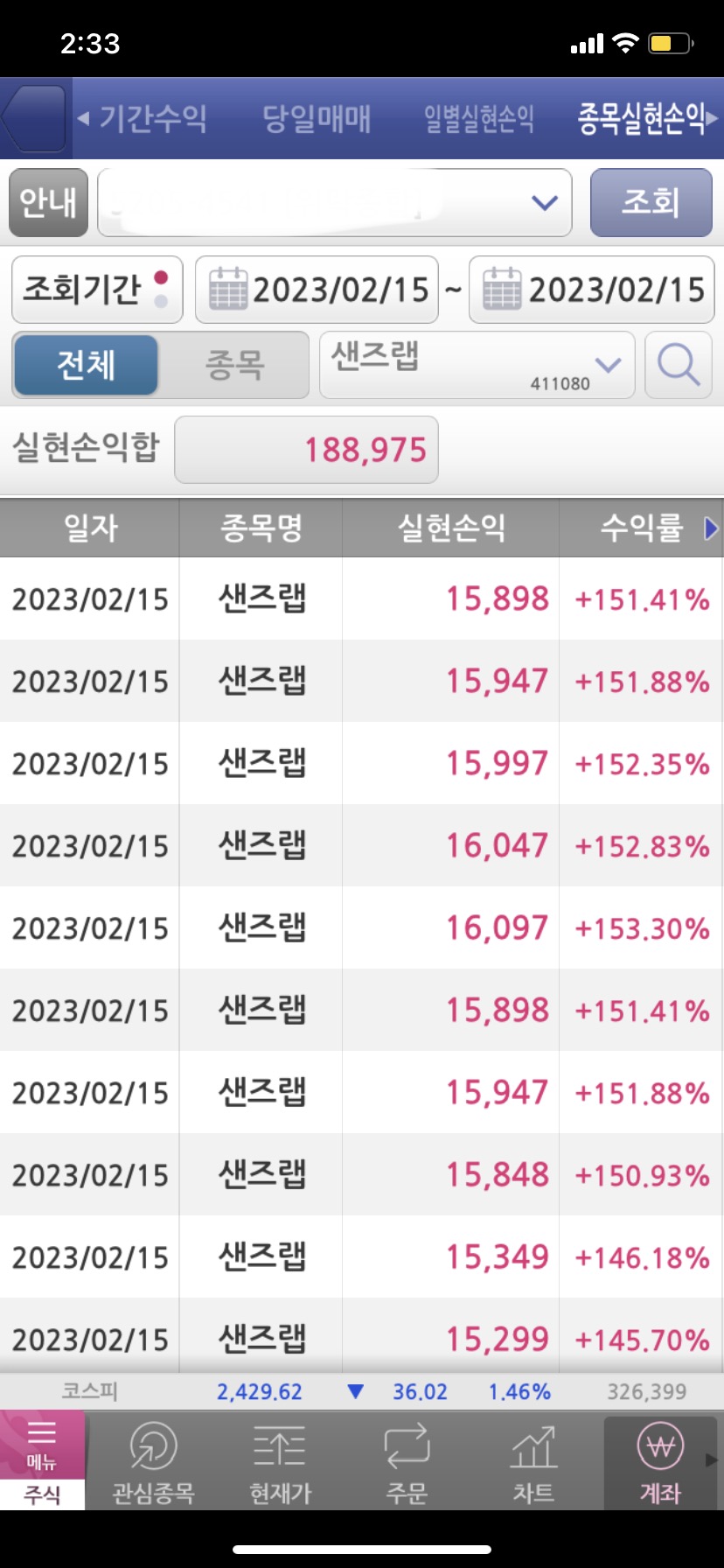| 꿈비 매도 수익 280%. 154,274원. 키움증권 꿈비 공모주 매도. (0) | 2023.02.13 |