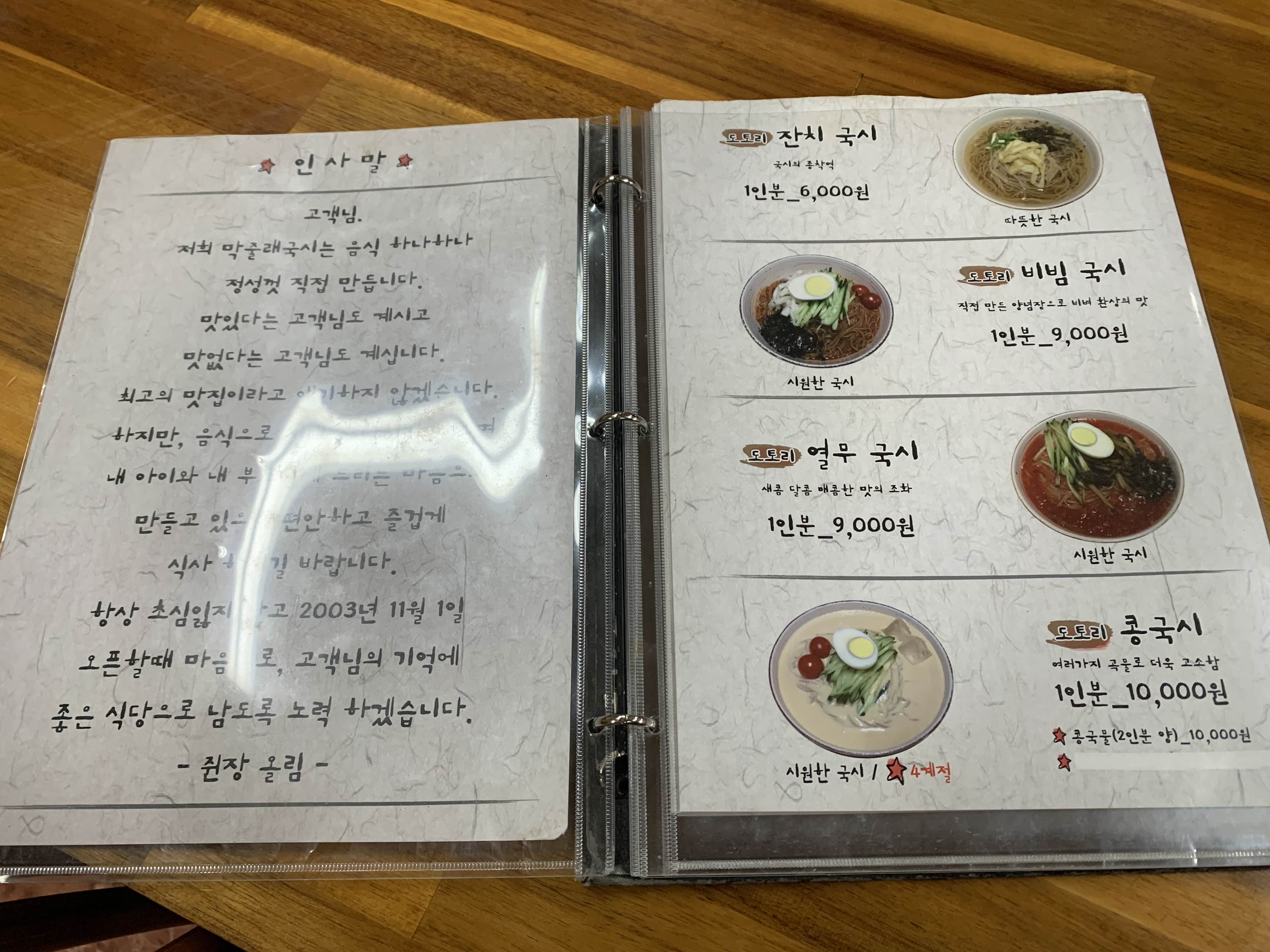 도토리콩칼국시 따뜻한콩국시 10,000원
